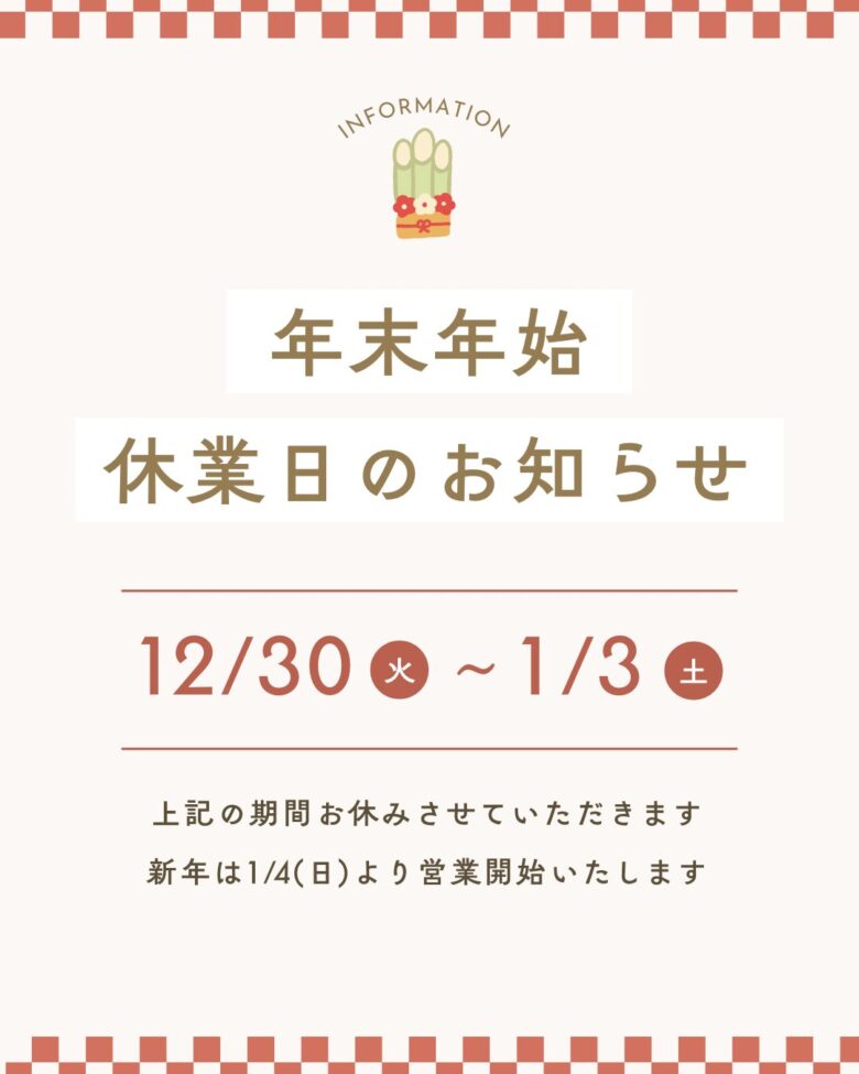 誠に勝手ながら、下記期間は年末年始休業とさせていただきます。