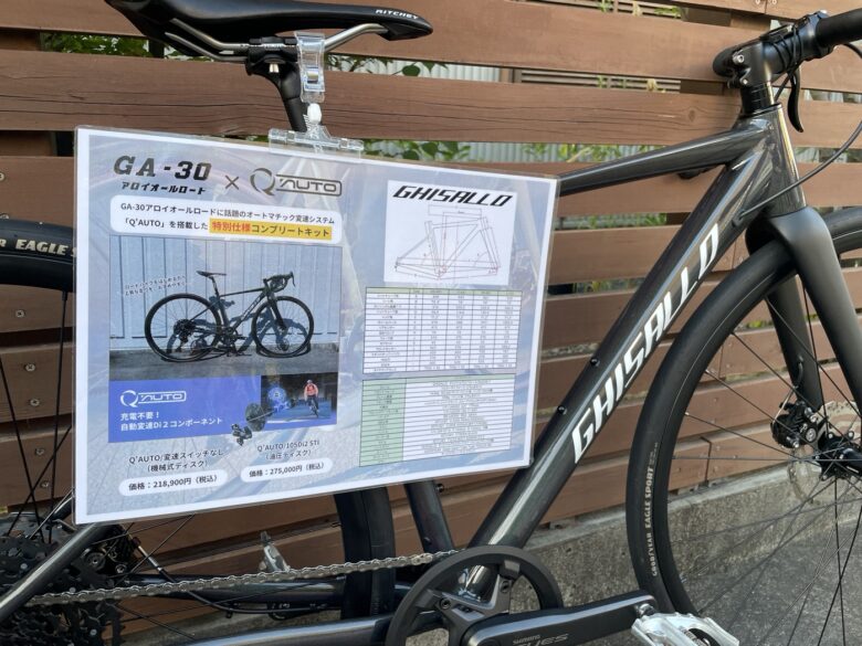 先日、フラットバー用のQ’AUTO試乗車をご用意!というお知らせをしましたが、今回新たに発表のあったGHISALLO GA-30 Q’AUTO仕様の試乗車をメーカーさんにお借りしてご用意しました!(お盆期間中)
